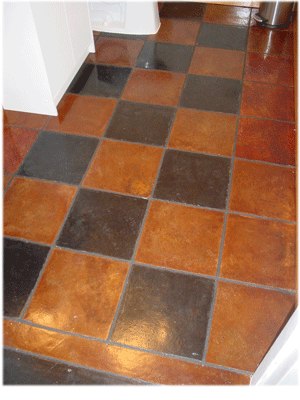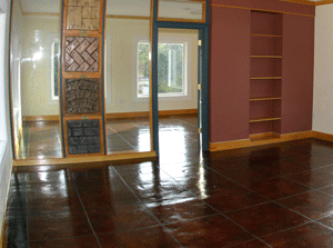 For those wishing a distinct look for their floors, acid staining is an excellent option. Acid stained floors are the stunning results of a chemical reaction between the acid stain and the concrete surface, creating a deep, marbled color effect. The rich color becomes a permanent part of the concrete, so it can never peel, chip or fade. The acid stained floors are sealed with a sealer and wax that resists scratches, stains and chemicals making them easy to maintain for many years.